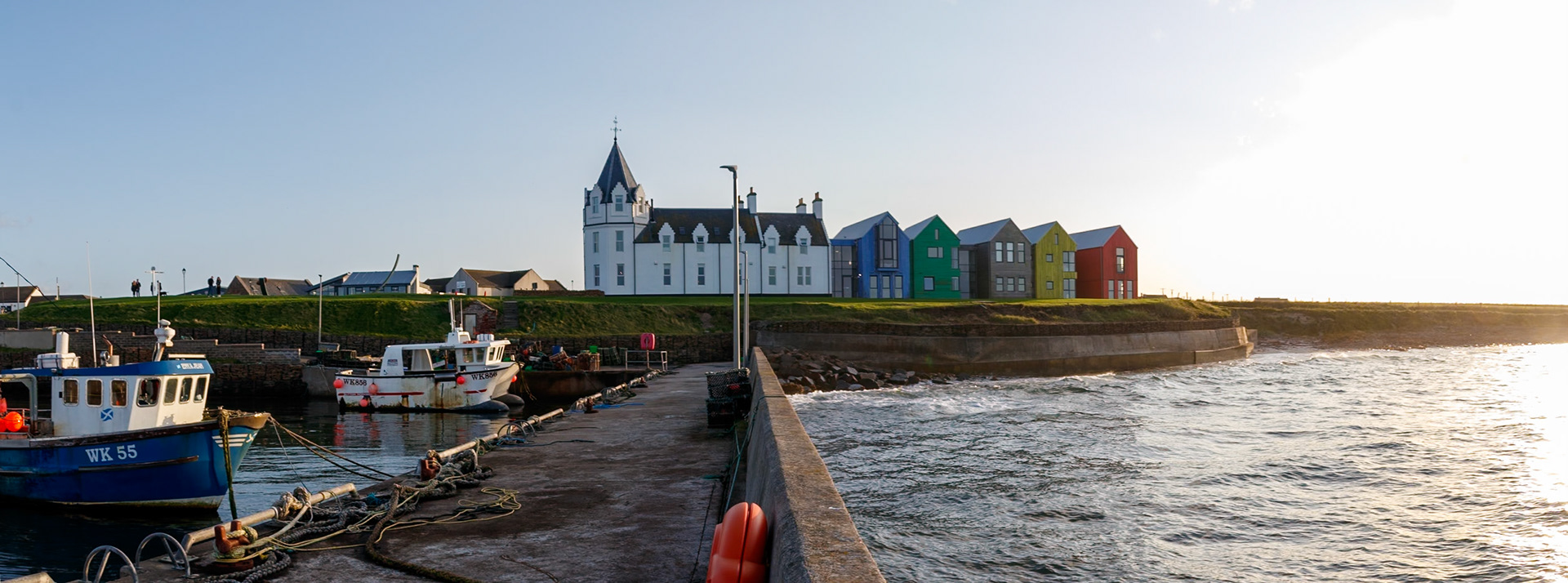 Looking down the harbour steps into a nice clear blue sea
