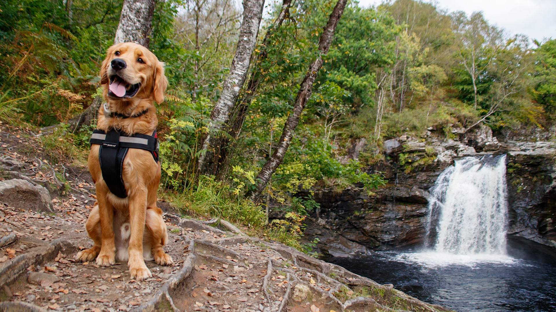 Two Springer Spaniels are being taken for a walk through the mountains in Italy while its very icy and snowy.